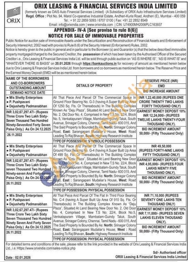 All That Piece And Parcel Of The Flat In Third Floor Bearing No. C-4 (having A Super Built Up Area Of 910 Sq. Fts. Or Thereabouts) In The Building Complex Known As "Deju Plaza", Situated At Land Bearing New Door No. 2, Old Door No. 4, Comprised In New T.S No. 22/4, Block No.5, Venkatapuram Village, Mambalam-Guindy Taluk, South Avenue, Srinagar Colony, Chennai, Tamil Nadu-600015, And The Said Property Is Bounded By As: North: Srinagar Colony Road, East: Sarangapani Mudaliar's House, West: Road Leading To Raj Bhavan, South: Highway Research Institute