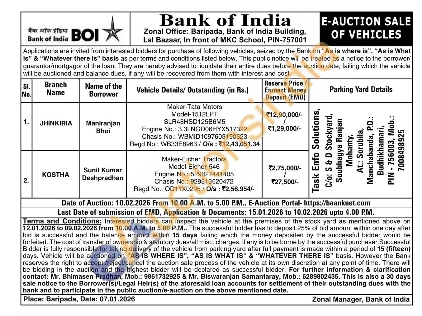 Maker-Eicher Tractors Model-Eicher 546 Engine No.: 529827441405 Chasis No.: 929813520472 Regd No.: OD11X0295/O/s: ₹2,56,954