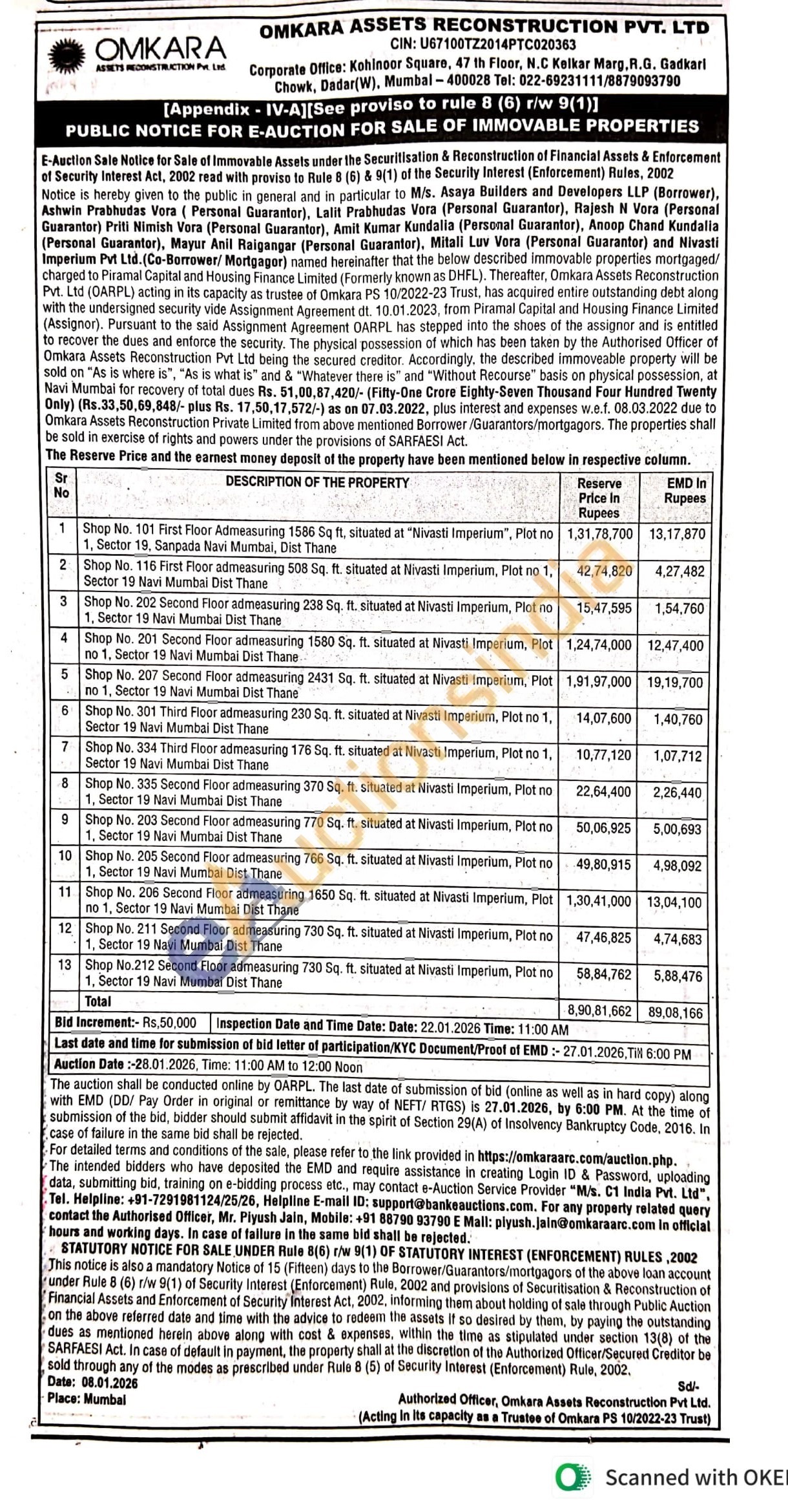 Contact Authorised Officer, Mr. Piyush Jain, Mobile: +91 88790 93790