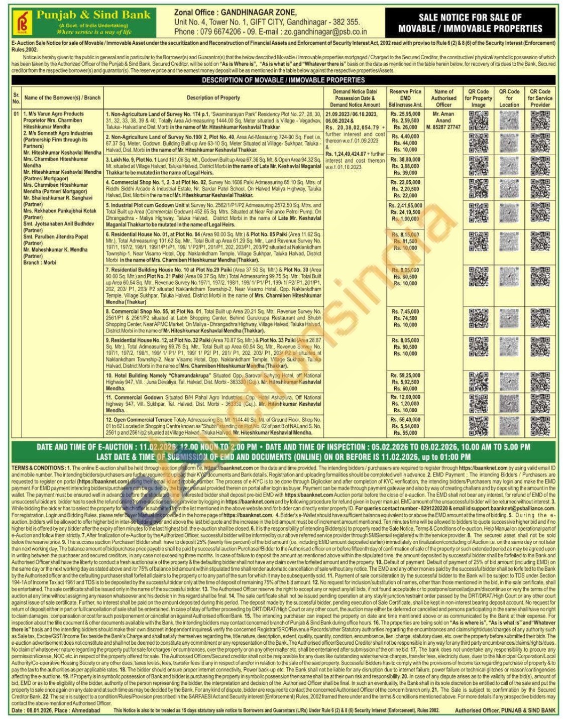 11. Commercial Godown Situated B/H Pahal Agro Industries, Opp. Hotel Ashapura, Off National highway 947, Vill. Sukhpar, Tal. Halvad, Dist. Morbi 363330 (Guj.). Mr. Hiteshkumar Keshavlal Mendha.