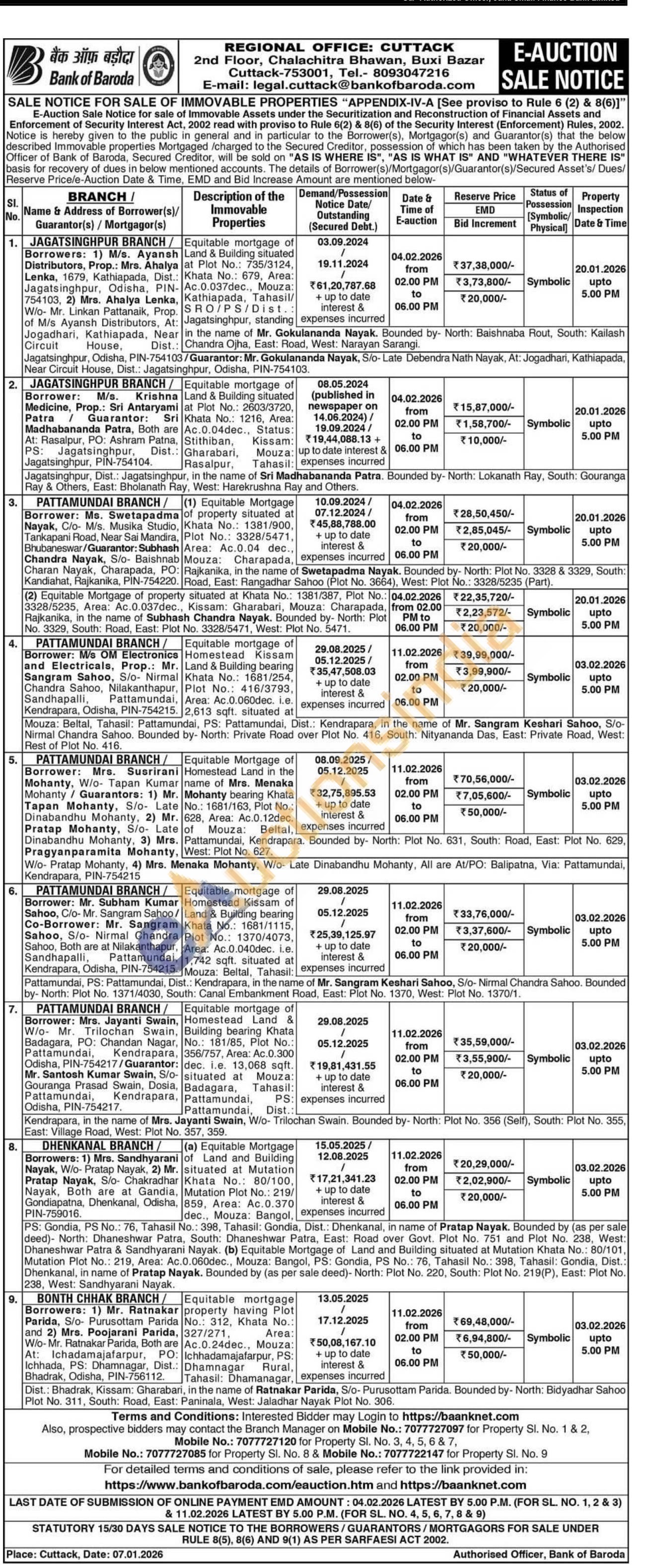 Equitable Mortgage Sandhyarani of Land and Building situated at Mutation Khata No.: 80/100 PS: Gondia, PS No.: 76, Tahasil No.: 398, Tahasil: Gondia, Dist.: Dhenkanal, in name of Pratap Nayak. Bounded by (as per sale deed)- North: Dhaneshwar Patra, South: Dhaneshwar Patra, East: Road over Govt. Plot No. 751 and Plot No. 238, West: Dhaneshwar Patra & Sandhyarani Nayak. (b) Equitable Mortgage of Land and Building situated at Mutation Khata No.: 80/101, Mutation Plot No.: 219, Area: Ac.0.060dec., Mouza: Bangol, PS: Gondia, PS No.: 76, Tahasil No.: 398, Tahasil: Gondia, Dist.: Dhenkanal, in name of Pratap Nayak. Bounded by (as per sale deed)- North: Plot No. 220, South: Plot No. 219(P), East: Plot No. 238, West: Sandhyarani Nayak.