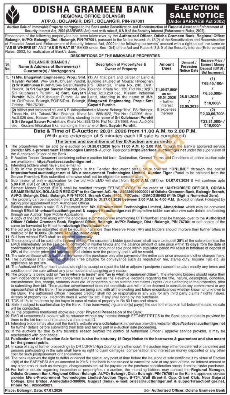 All that part and parcel of Land & Building situated at Mouza: Rinbachan, PS: Bolangir, Thana No. 200, Dist. Bolangir, Khata No. 130, Plot No.: 32(P) Area: Ac.0.250 dec., Kissam Industrial Purohit, W/o- Sri Kulbhusan Purohit, All are Land,
