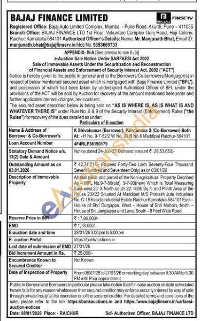 All that piece and parcel of the Non-agricultural Property Decribed As-MPL No.9-7-56(old), 9-7-93(new) Which is Total Measuring East-west 23' X North-south 22506 Sq ft. and Plinth Area of the House 23X22 Situated At Maddipet M/S Prakash Jute Industries No. C-18 Kasidc Industrial Estate Raichur Kamataka-584101 East-House of Shri Durgappa, West House of Shri Mohain, North-House of Sri. Janglappa and Lane, South-8 Feet Wide Road