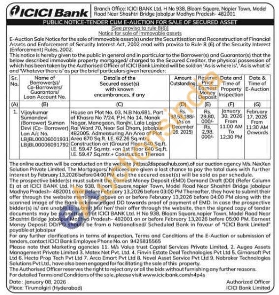 House on Plot No. 03, N.B No.681, Port of Khasra No 7/24, P.H. No 14, Nanak Nagar, Manegaon, Ranjhi, Lala Lajpat Roi Ward 70, Near Sai Dham, Jabalpur 482005. Admeasuring An Area of Plot Area 670 Sq.ft. I.E. 62.26 Sq.mtr., Construction on (Ground Floor 640 Sq.ft. IE. 59.47 Sq.mtr. on 1st Floor 640 Sq.ft. LE. 59.47 Sq.mtr.+ Constuction Thereon