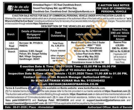 Maruti Suzuki Baleno Zeta 5 Seater ChassisNo. -MBH0535 Engine No. 2024 (Petrol) Vehicle reg. No.-GJ18BR1890 Colour-Pearl Arctic White Year of Mfg: May 2022 Validation 25.05.2037