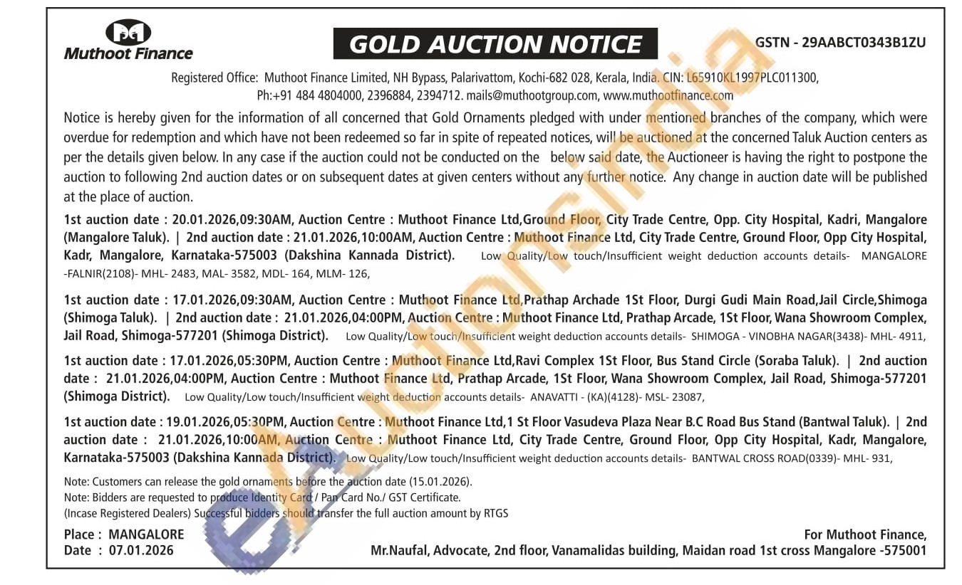 Muthoot Finance Ltd Gold Auctions Auction in Mangalore
