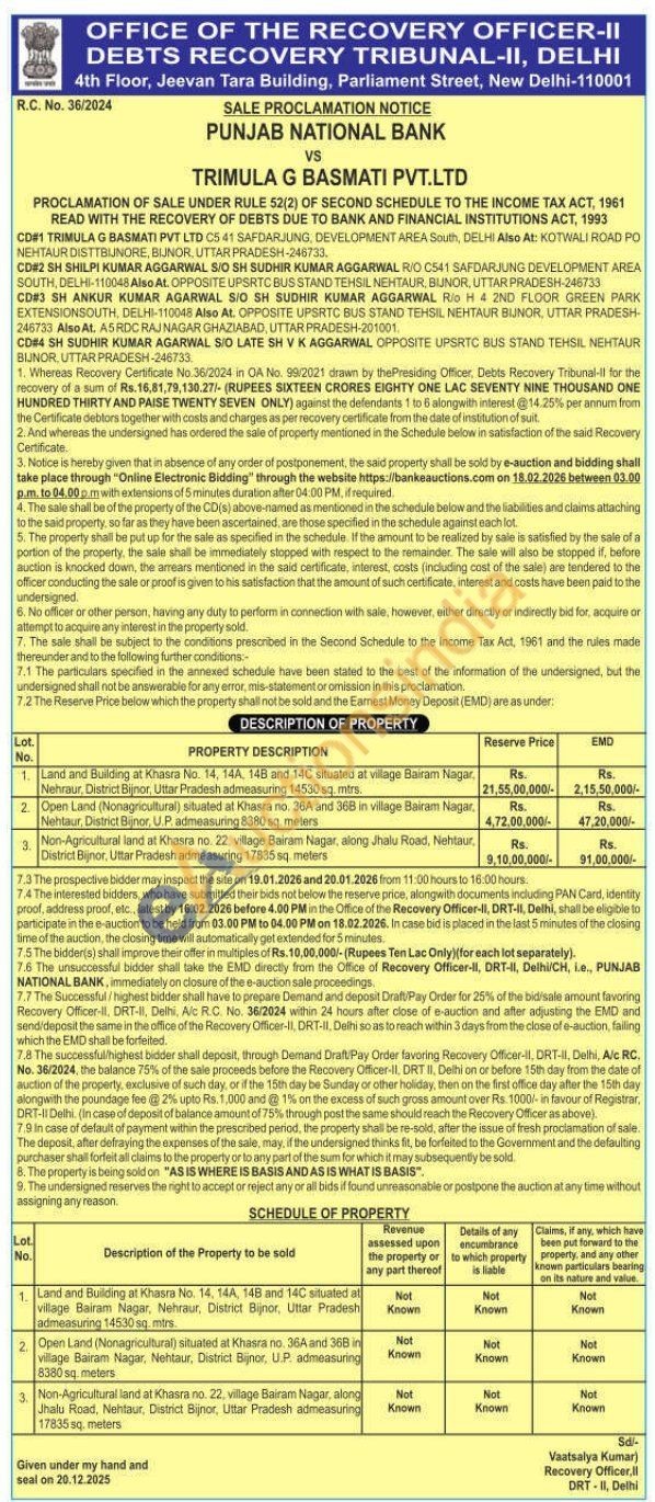 Land and Building at Khasra No. 14, 14A, 148 and 14C situated at village Bairam Nagar, Nehraur, District Bijnor, Uttar Pradesh admeasuring 14530 sq. mtrs