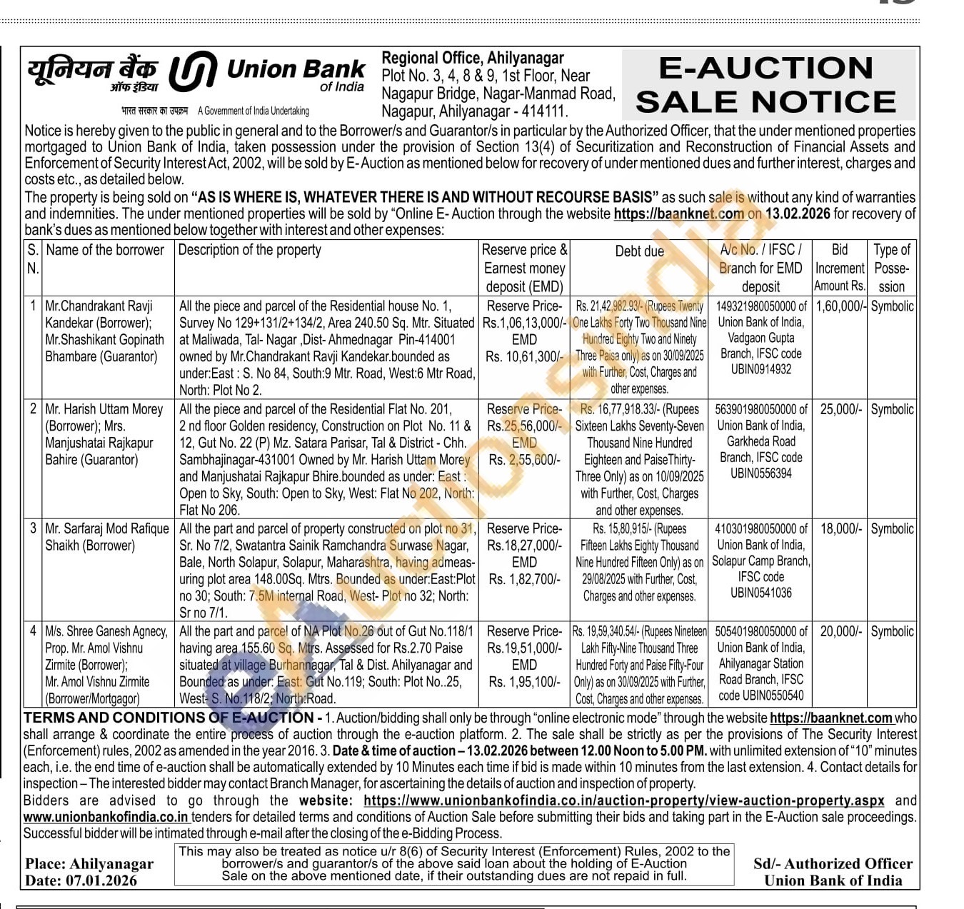 All the part and parcel of property constructed on plot no 31, Sr. No 7/2, Swatantra Sainik Ramchandra Surwase Nagar, Bale, North Solapur, Solapur, Maharashtra, having admeas-uring plot area 148.00Sq. Mtrs. Bounded as under: East:Plot no 30; South: 7.5M internal Road, West- Plot no 32; North: Sr no 7/1