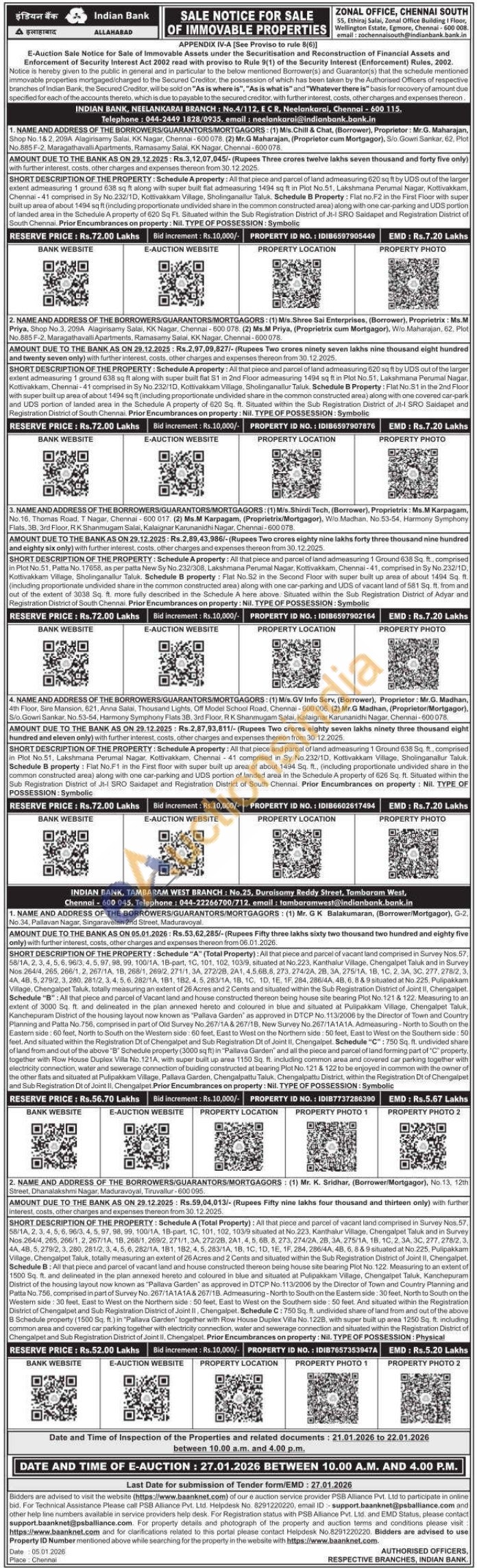 SHORT DESCRIPTION OF THE PROPERTY: Schedule A property: All that piece and parcel of land admeasuring 620 sqft by UDS out of the larger extent admeasuring 1 ground 638 sq ft along with super built flat admeasuring 1494 sq ft in Plot No.51, Lakshmana Perumal Nagar, Kottivakkam, Chennai-41 comprised in Sy No.232/1D, Kottivakkam Village, Sholinganallur Taluk, Schedule B Property: Flat no. F2 in the First Floor with super built up area of about 1494 sq ft (including proportionate undivided share in the common constructed area) along with one car-parking and UDS portion of landed area in the Schedule A property of 620 Sq Ft. Situated within the Sub Registration District of Jt-1 SRO Saidapet and Registration District of South Chennai. Prior Encumbrances on property: Nil. TYPE OF POSSESSION: Symbolic