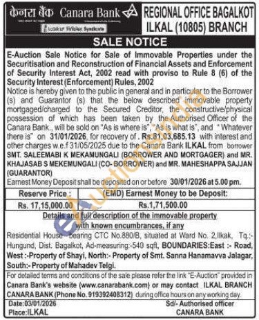ILKAL BRANCH CANARA BANK (Phone No : 919392408312)