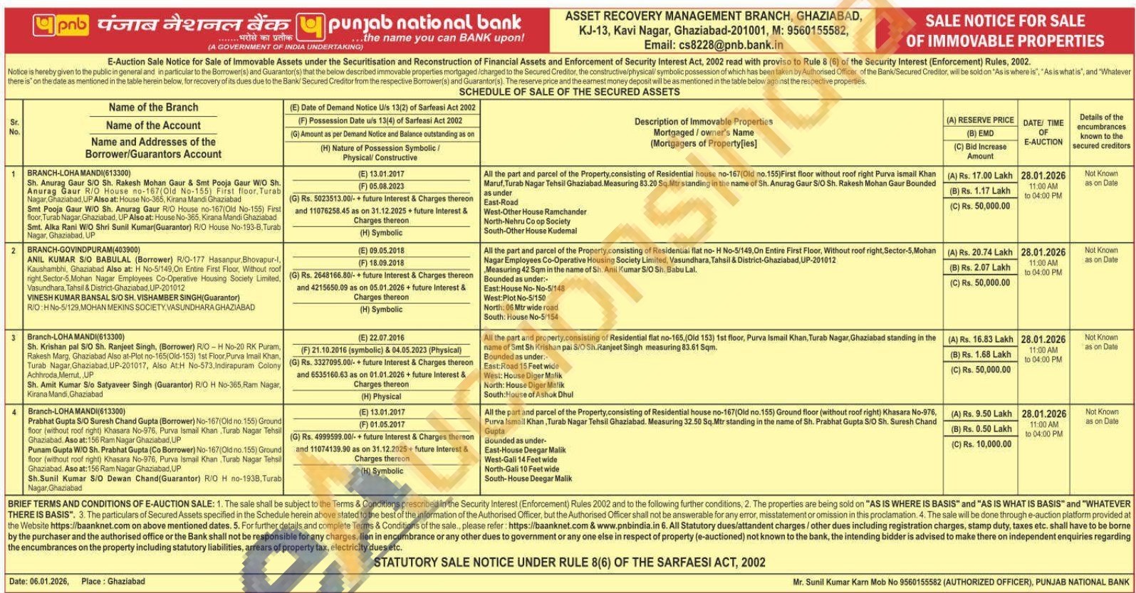 All the part and parcel of the Property,consisting of Residential house no-167(Old no.155) Ground floor (without roof right) Khasara No-976, Purva Ismail Khan, Turab Nagar Tehsil Ghaziabad. Measuring 32.50 Sq.Mtr standing in the name of Sh. Prabhat Gupta S/O Sh. Suresh Chand Gupta Bounded as under- East-House Deegar Malik West-Gali 14 Feet wide North-Gali 10 Feet wide South-House Deegar Malik