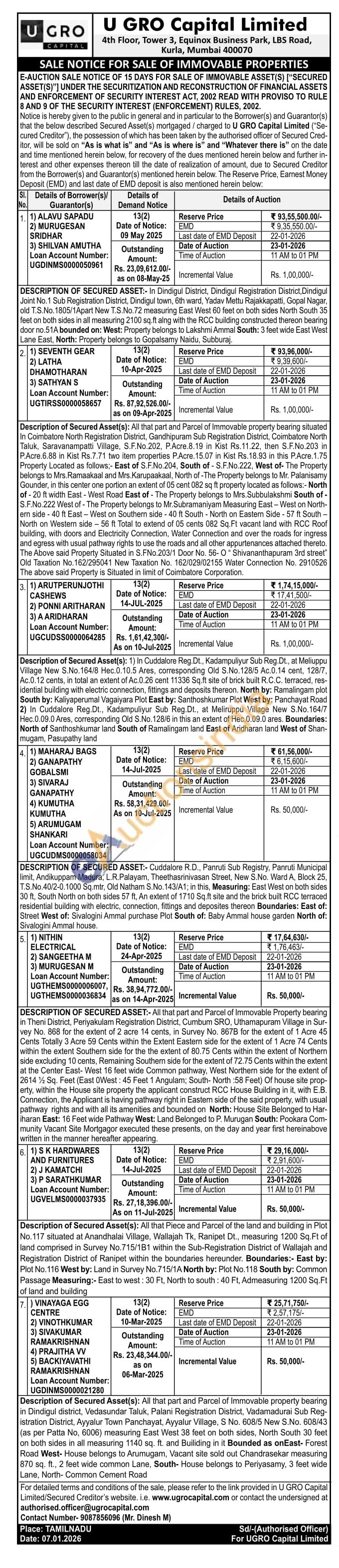 DESCRIPTION OF SECURED ASSET:- All that part and Parcel of Immovable Property bearing in Theni District, Periyakulam Registration District, Cumbum SRO, Uthamapuram Village in Sur-vey No. 868 for the extent of 2 acre 14 cents, in Survey No. 867B for the extent of 1 Acre 45 Cents Totally 3 Acre 59 Cents within the Extent Eastern side for the extent of 1 Acre 74 Cents within the extent Southern side for the the extent of 80.75 Cents within the extent of Northern side excluding 10 cents, Remaining Southern side for the extent of 72.75 Cents within the extent at the Center East-West 16 feet wide Common pathway, West Northern side for the extent of 2614 ½ Sq. Feet (East 0West: 45 Feet 1 Angulam; South- North :58 Feet) Of house site prop-erty, within the House site property the applicant construct RCC House Building in it, with E.B. Connection, the Applicant is having pathway right in Eastern side of the said property, with usual pathway rights and with all its amenities and bounded on North: House Site Belonged to Har-iharan East: 16 Feet wide Pathway West: Land Belonged to P. Murugan South: Pookara Com-munity Vacant Site Mortgagor executed these presents, on the day and year first hereinabove written in the manner hereafter appearing