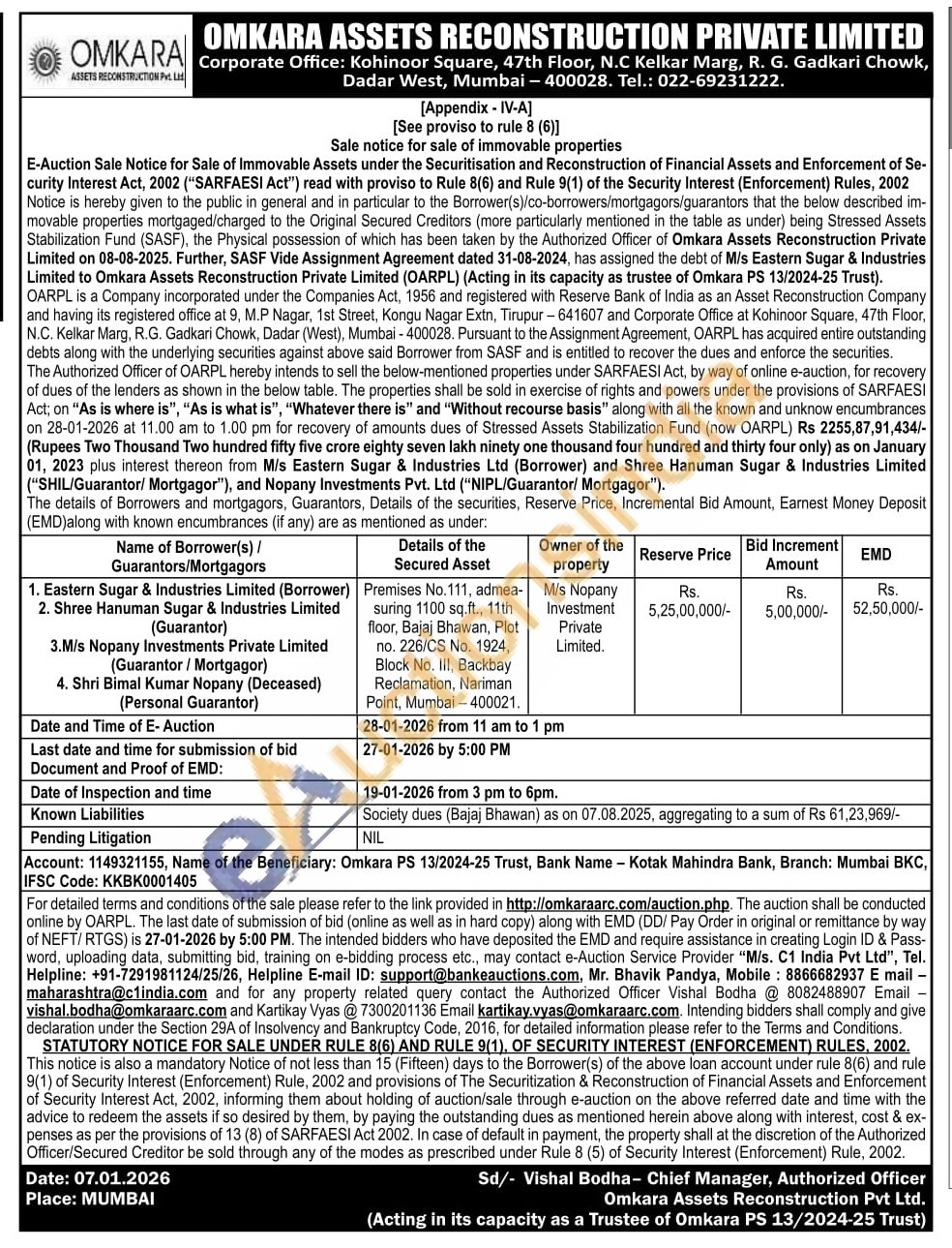 Premises No.111, admea-suring 1100 sq.ft., 11th floor, Bajaj Bhawan, Plot no. 226/CS No. 1924, Block No. III, Backbay Reclamation, Nariman. Point, Mumbai-400021.