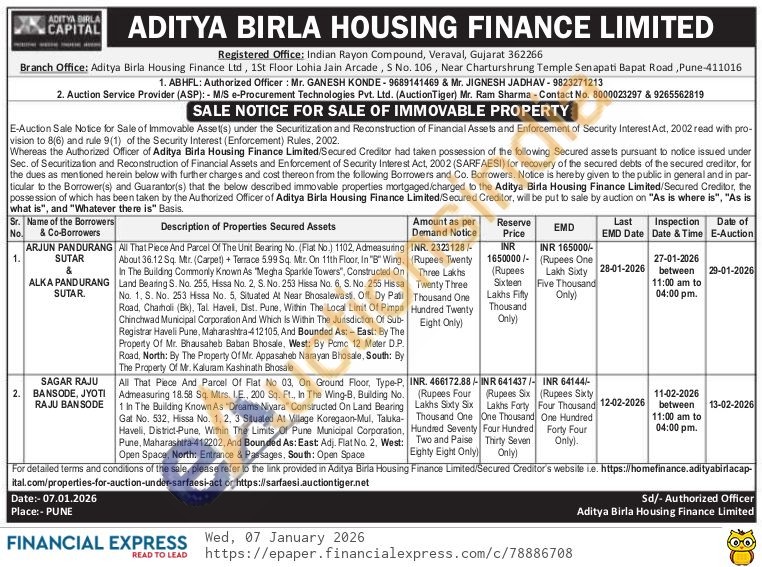 All That Piece And Parcel Of Flat No 03, On Ground Floor, Type-P, Admeasuring 18.58 Sq. Mtrs. I.E., 200 Sq. Ft, In The Wing-B, Building No. 1 In The Building Known As "Dreams Nivara" Constructed. On Land Bearing Gat No. 532, Hissa No. 1, 2, 3 Situated At Village Koregaon-Mul, Taluka-Haveli, District-Pune, Within The Limits Of Pune Municipal Corporation, Pune, Maharashtra-412202, And Bounded As: East: Adj. Flat No. 2, West: Open Space, North: Entrance & Passages, South: Open Space