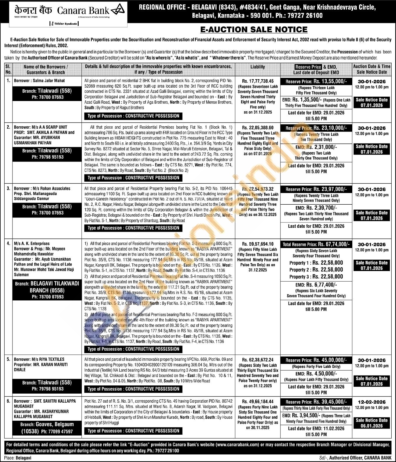 6) Plot No. 27 out of R, S, No. 3/1, corresponding CTS No. 49 having Corporation PID No. 80742 admeasuring 111. 11 Sq. Mtrs situated at Ward No. 8, Adarsh Nagar, M. Vadgaon, Belagavi within the limits of Corporation of the City of Belagavi & boundaries East: By House property of Hebball, West: By property of Shri Arun Manohar Kurade, North: Byrond, South: By House property of Shri Huggi