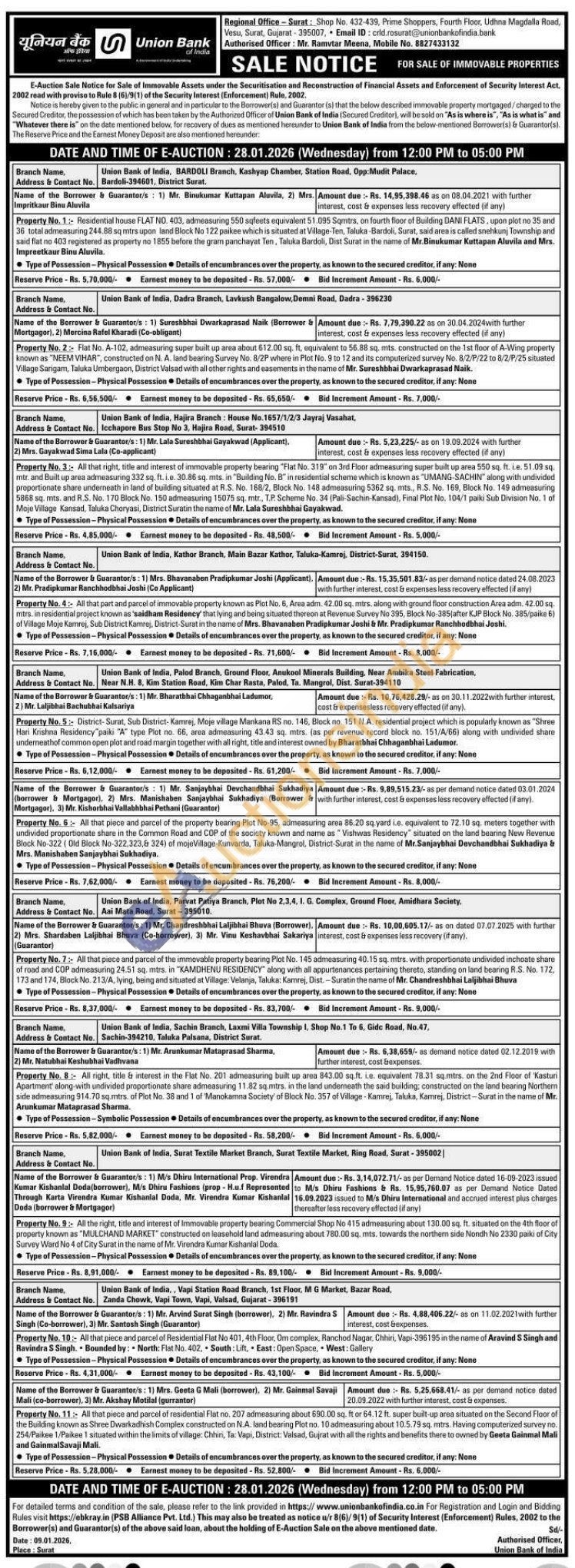 Contact Authorised Officer: Mr. Ramvtar Meena, Mobile No. 8827433132