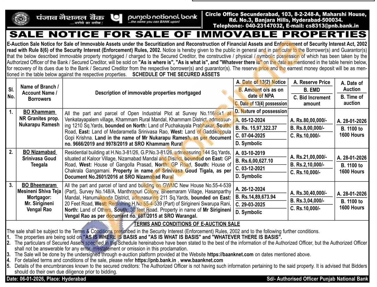 All the part and parcel of Open Industrial Plot at Survey No.116/681 at Venkatayapalem village, Khammam Rural Mandal, Khammam District, admeasur-ing 1210 Sq. Yards, bounded on North: Land of Puchakayala Prabhakar, South: Road, East: Land of Medarametla Srinivasa Rao, West: Land of Gaddikoppula Gopi Krishna. Land in the name of Mr Nukarapu Ramesh, as per document no. 9666/2019 and 9978/2019 at SRO Khammam Rural