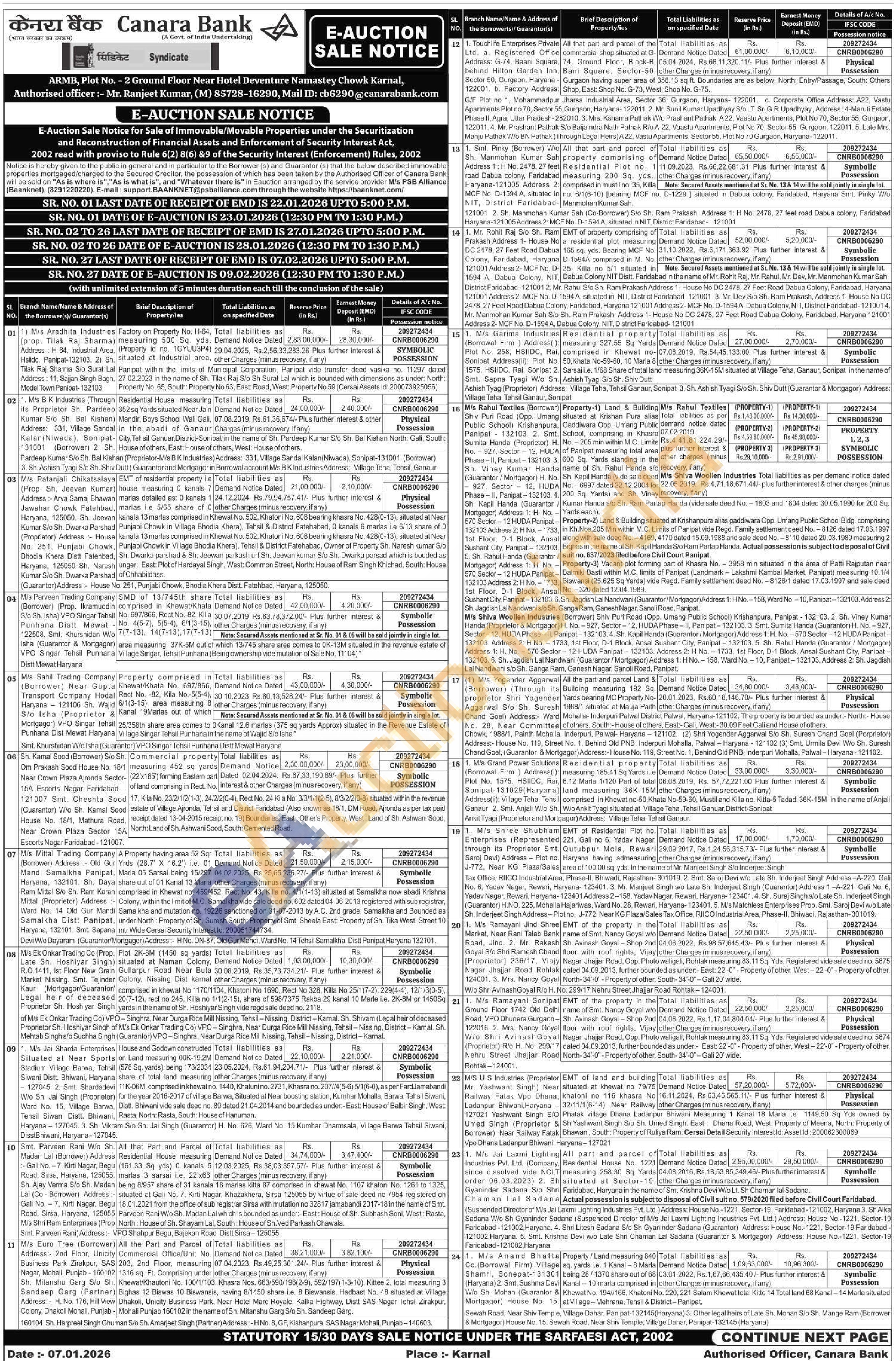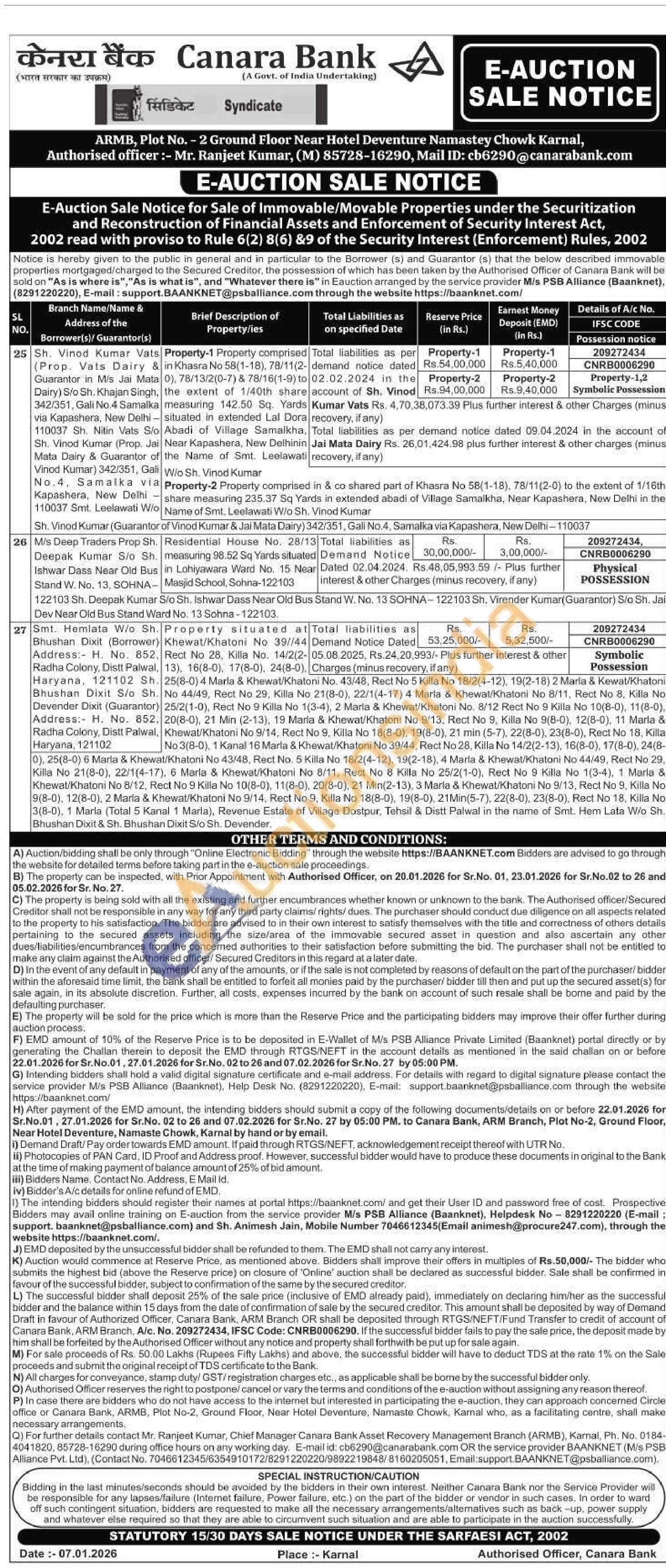 EMT of the property in the name of Smt. Nancy Goyal w/o Sh. Avinash Goyal - Shop 2nd floor with roof rights, Vijay Nagar, Jhajjar Road, Opp. Photo waligali, Rohtak measuring 83.11 Sq. Yds. Registered vide sale deed no. 5674 dated 04.09.2013, further bounded as under:- East: 22-0"-Property of other, West-22-0"- Property of other, North-34-0"-Property of other, South-34-0"-Gali 20' wide.