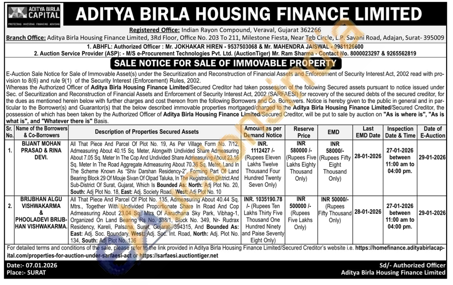 ABHFL: Authorized Officer: Mr. JOKHAKAR HIREN-9537503068 & Mr. MAHENDRA JAISWAL-9981126600
