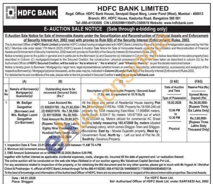 All the piece and parcel of Residential House bearing Plot - No.29 comprised in RS No. 105B, Property No. 18-595-246 old property No 1058 measuring East-West: 17.068894 meters, North-South: 8.53417 Sq meters 145.671904 out of which 1) 82.033349 sq. Meters utilized for commercial AC Sheet building totally measuring 102.472009 Sq. meters situated at Karadagi colony, which comes Shiggon Town and Shiggon. Boundaries: East by: Mowlai Gujarathi property, West by: Government Road, North by Left out land of Plot No 29, South by: Savanuru Property.