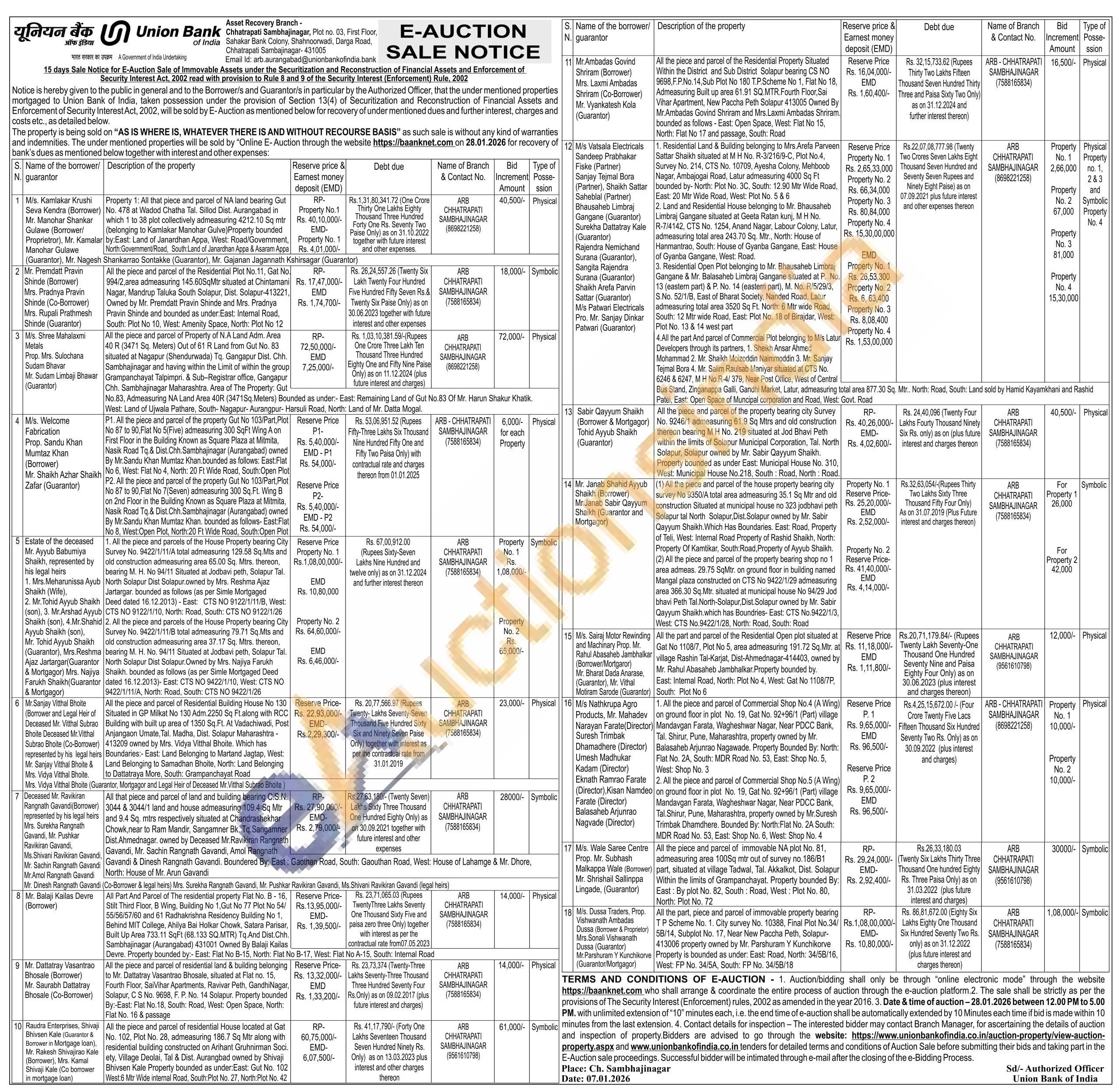 All the piece and parcel of the property bearing city Survey No. 9246/1 admeasuring 61.9 Sq Mtrs and old construction thereon bearing M H No. 219 situated at Jod Bhavi Peth within the limits of Solapur Municipal Corporation, Tal. North Solapur, Solapur owned by Mr. Sabir Qayyum Shaikh. Property bounded as under East: Municipal House No. 310, West: Municipal House No.218, South Road, North: Road.