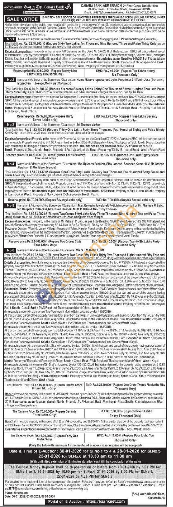 Details of properties: (Property in the name of Mr Mahesh M Babu as per Tittle Deed no 1028/1996 of Meenachil SRO) All that part and parcel of immovable property measuring 56.44 Ares in Re Sy Block-21, Re Sy no. 575/1-1 (Old Sy No. 180/11, 180/12 and 180/13) of Payyapar Desom, Ward 6, Lalam Village, Meenachil Taluk, Karoor Panchayath, Kottayam District along with a residential building (Building no. 6/292-A) and all the improvements thereon. Boundaries as per tittle deed. East: Theruvilparambu, North: Pulikkaparambu purayidom, West: Own Property & Kunneiparambupurayidom, South: Road and own property and Varali Thodu