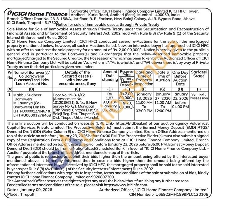 Door No. 19-3-1/K2 (Assessement No.1012018621), S. No. 6, Now Survey No. 6/1, Municipal 19th Ward, Chittoor Dist. Sri Balaji Reg. Dist. Tirupati Sub-Dist. Tirupati Urban Mandal.