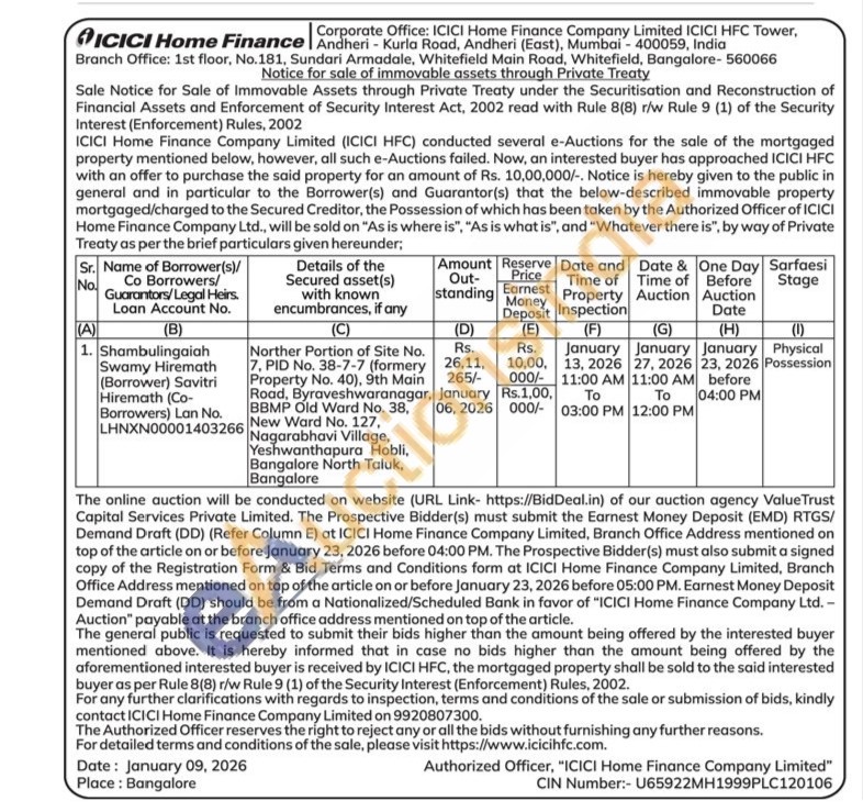 Norther Portion of Site No. 7, PID No. 38-7-7 (formery Property No. 40), 9th Main Road, Byraveshwaranagar, BBMP Old Ward No. 38, New Ward No. 127, Nagarabhavi Village, Yeshwanthapura Hobli, Bangalore North Taluk, Bangalore