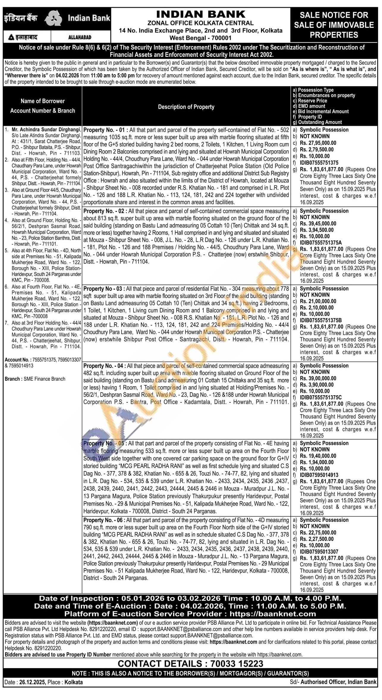 All that piece and parcel of self-contained commercial space admeasuring 482 sq.ft. including super built up area with marble flooring situated on Ground Floor of the said building (standing on Bastu Land admeasuring 01 Cottah 15 Chittaks and 35 sq.ft. more or less) having 1 Room, 1 Toilet comprised in and lying situated at Holding/Premises No. -56/2/1, Deshpran Sasmal Road, Ward No. -23, Dag No.126 &188 under Howrah Municipal Corporation P.S. Bantra, Post Office Kadamtala, Distt. Howrah, Pin 711101.