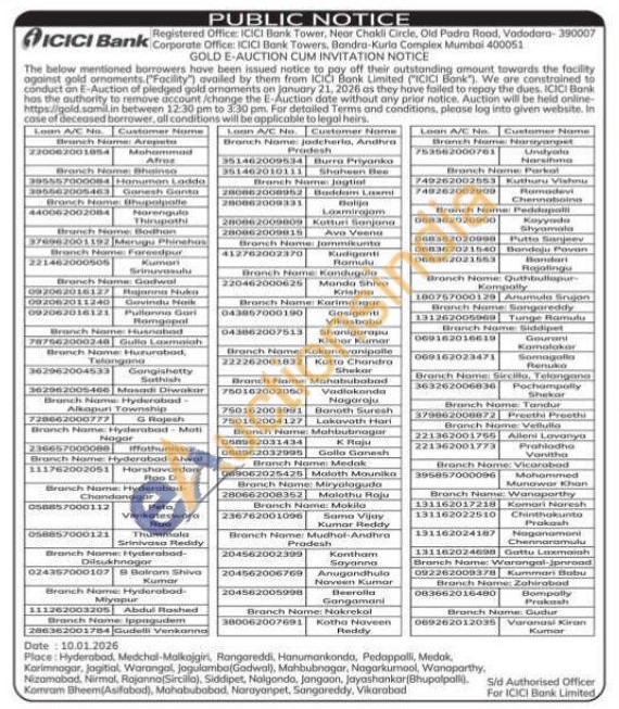 ICICI Bank Gold Auctions Auction in Kadapa