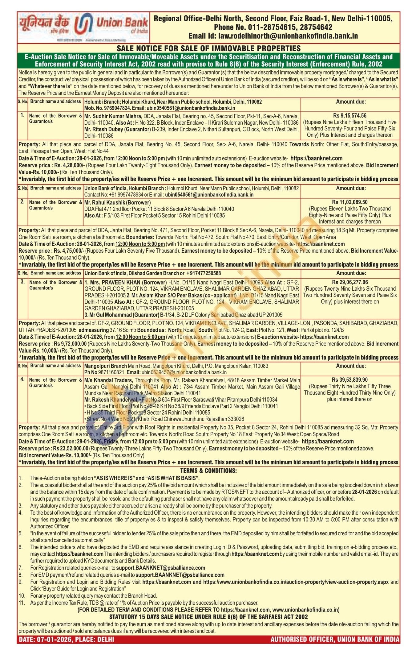 All that piece and parcel of DDA, Janata Flat, Bearing No. 45, Second Floor, Sec- A-6, Narela, Delhi-110040 Towards North: Other Flat, South:Entry/passage, East: Passage then Open, West: Flat No 44