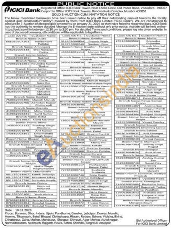 ICICI Bank Gold Auctions Auction in Gwalior