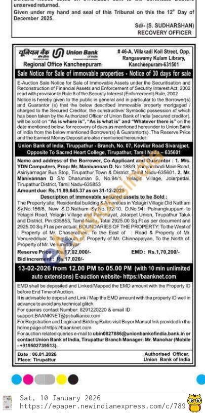 The Property site, Residential building & Amenities in Yelagiri Village Old Natham Sy.No:156/8, New S.D.Natham Sy No.192/10, D.No:94, Palnangkuppam to Yelagiri Road, Yelagiri Village and Panchayat, Jolarpet Union, Tirupathur Taluk and District, Pin:635853, Tamil Nadu, Total 2925.00 Sq.Ft as per document and 2925.00 Sq. Ftas per actual. BOUNDARIES OF THE PROPERTY: To the West of Property of Mr. Dhasarathan, To the East of Road & Property of Mr. Venureddiyar, To the South of: Property of Mr. Chinnapalyan, To the North of: Property of Mr. Venureddiyar