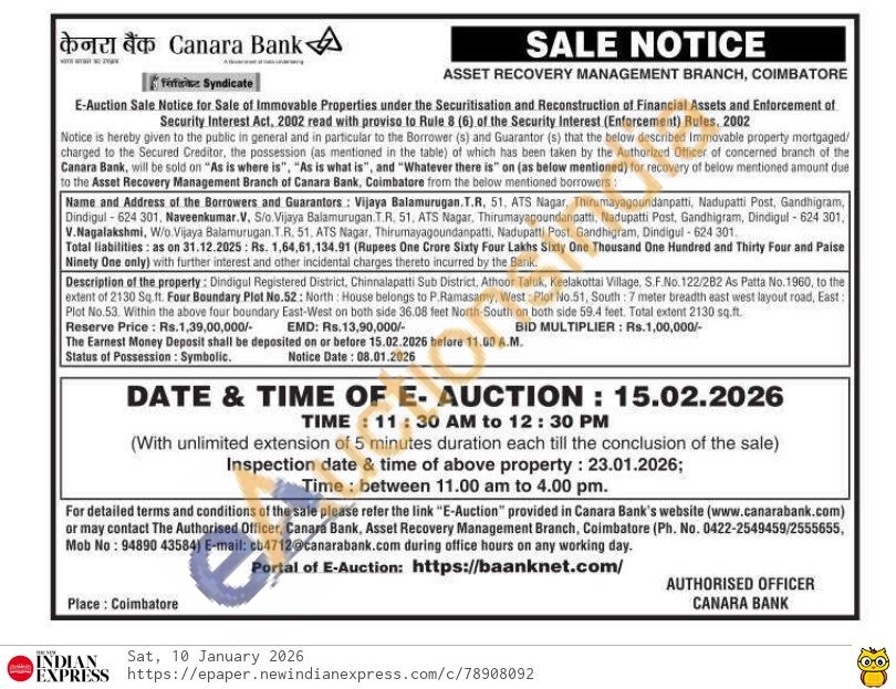 Dindigul Registered District, Chinnalapatti Sub District, Athoor Taluk, Keelakottai Village, S.F.No. 122/282 As Patta No.1960, to the extent of 2130 Sq ft. Four Boundary Plot No.52: North House belongs to P.Ramasamy, West: Plot No.51, South: 7 meter breadth east west layout road, East: Plot No.53. Within the above four boundary East-West on both side 36.08 feet North-South on both side 59.4 feet. Total extent 2130 sq.ft.