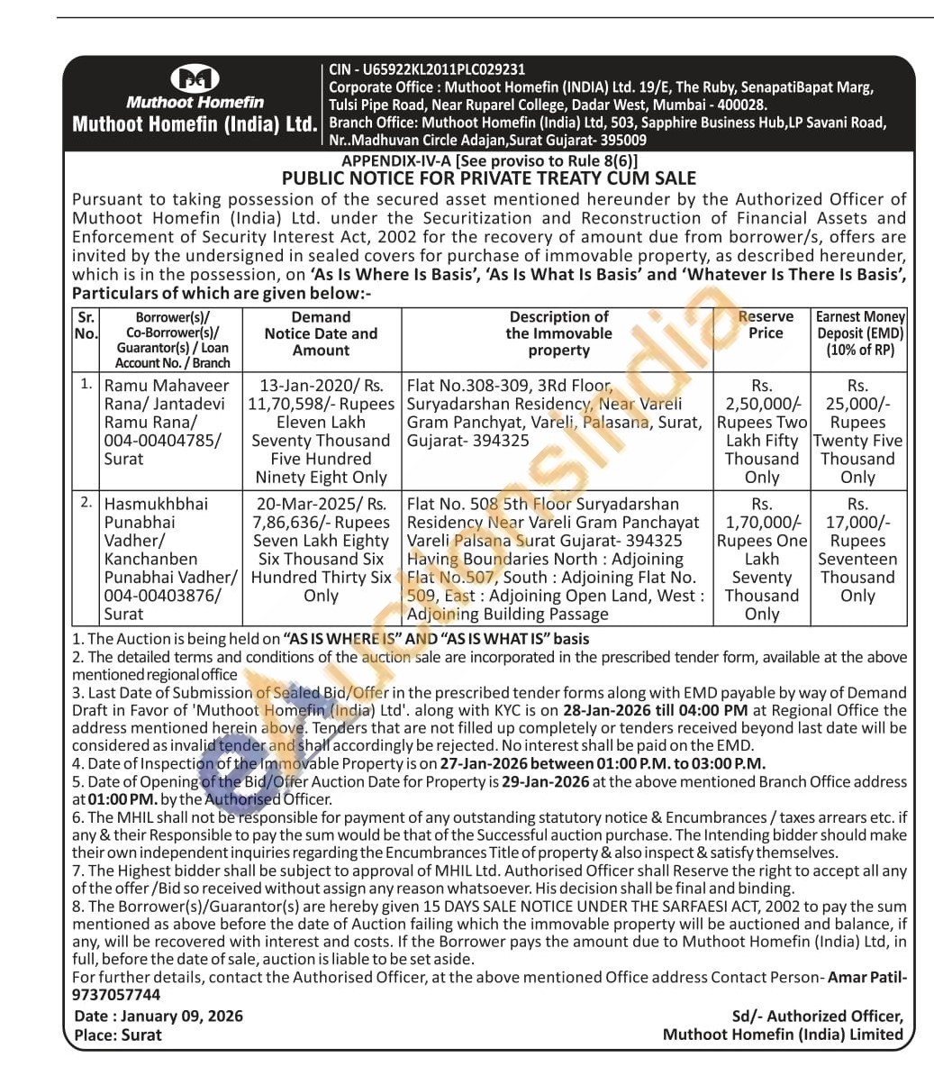 Flat No.308-309, 3Rd Floor, Suryadarshan Residency, Near Vareli Gram Panchyat, Vareli, Palasana, Surat, Gujarat-394325