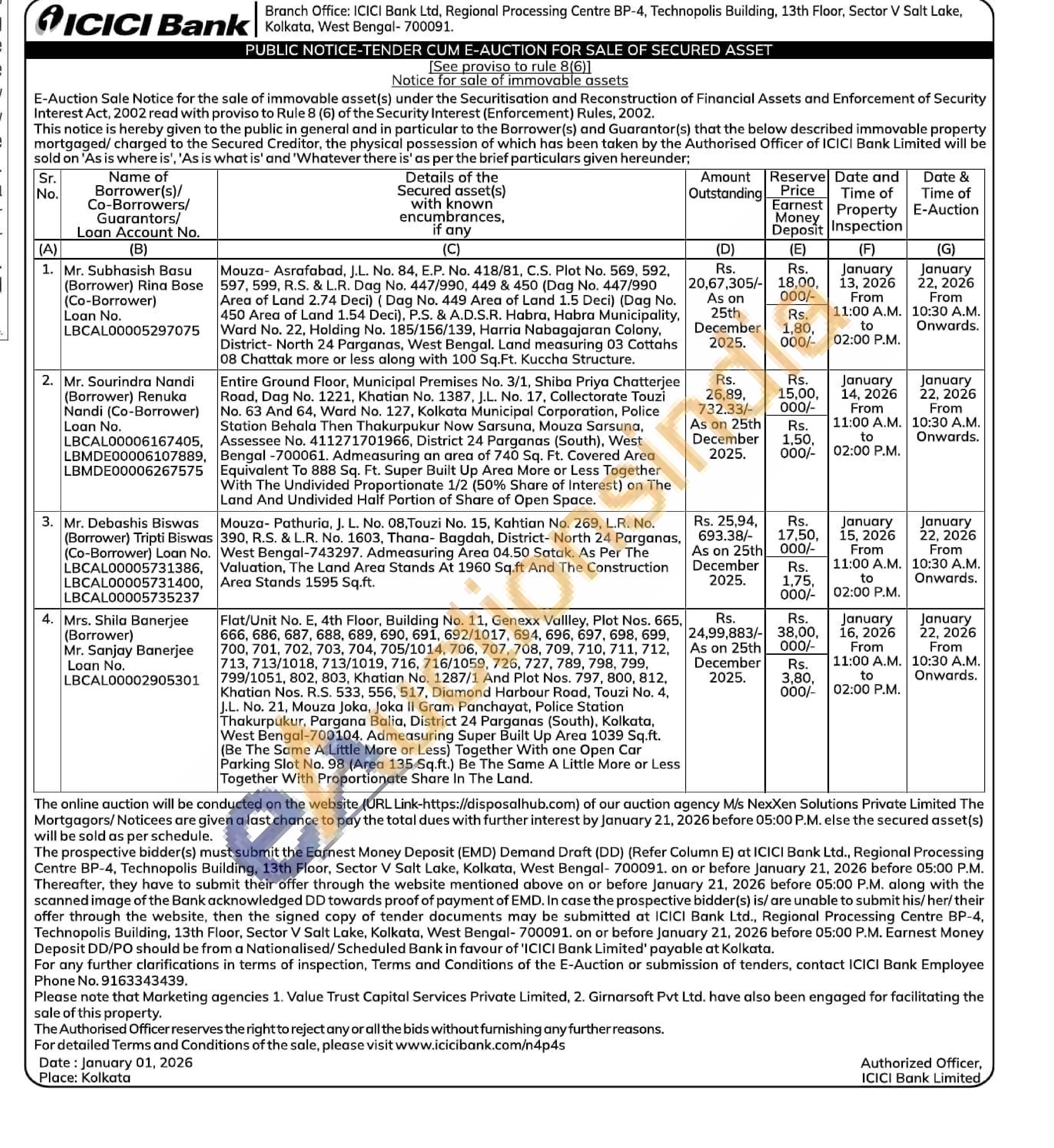 Flat/Unit No. E, 4th Floor, Building No. 11, Genexx Vallley. Plot Nos. 665, 666, 686, 687, 688, 689, 690, 691, 692/1017, 694, 696, 697, 698, 699, 700, 701, 702, 703, 704, 705/1014, 706, 707, 708, 709, 710, 711, 712, 713, 713/1018, 713/1019, 716, 716/1059, 726, 727, 789, 798, 799, 799/1051, 802, 803, Khatian No. 1287/1 And Plot Nos. 797, 800, 812. Khatian Nos. R.S. 533, 556, 517, Diamond Harbour Road, Touzi No. 4, JL. No. 21, Mouza Joka, Joka II Gram Panchayat, Police Station Thakurpukur, Pargana Balia, District 24 Parganas (South), Kolkata, West Bengal-700104. Admeasuring Super Built Up Area 1039 Sq.ft. Be The Same A Little More or Less) Together With one Open Car Parking Slot No. 98 (Area 135 Sq.ft.) Be The Same A Little More or Less Together With Proportionate Share In The Land.