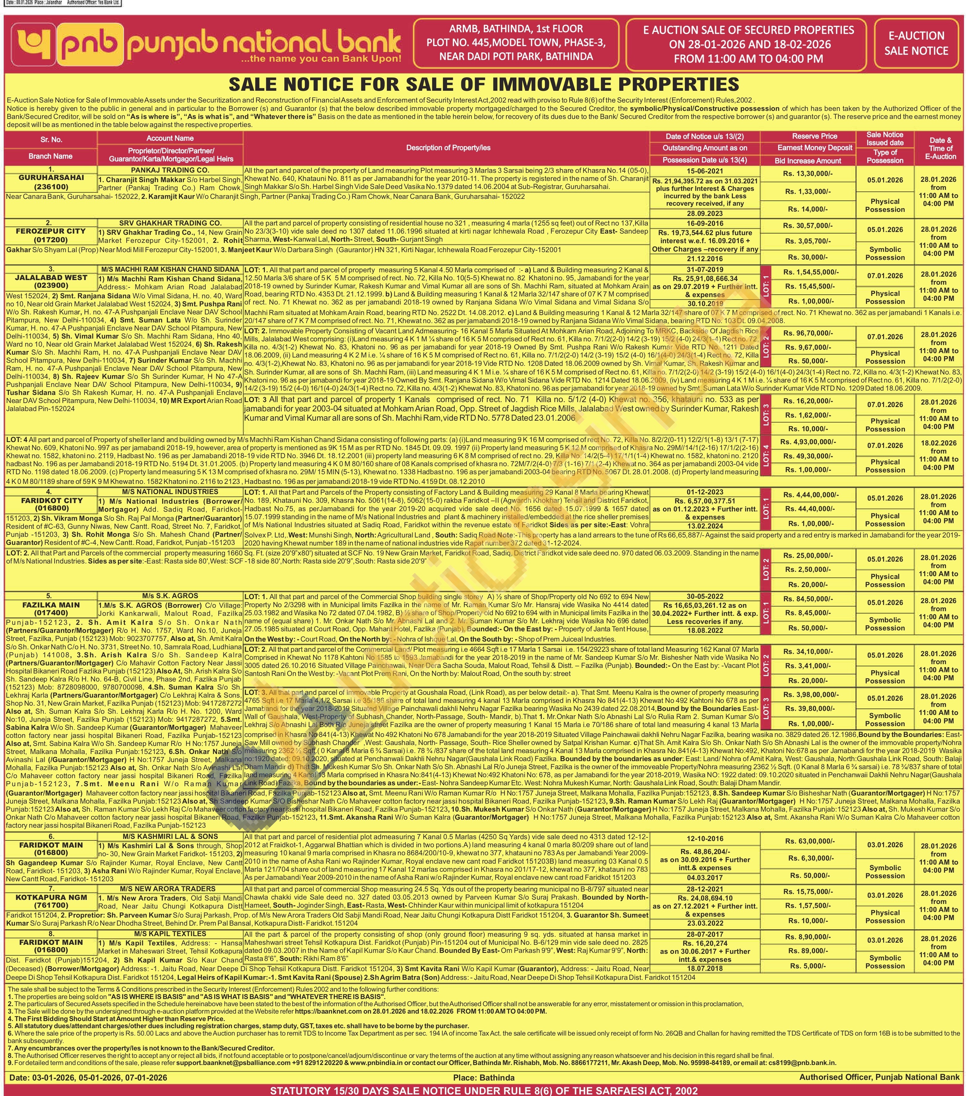 All part and parcel of Property of sheller land and building owned by M's Machhi Ram Kishan Chand Sidana consisting of following parts: (a) (i)Land measuring 9K 16 M comprised of rect No. 72, Killa No. 8/2/2(0-11) 12/2/1(1-8) 13/1 (7-17) Khewat No. 609, Khatoni No. 997 as per jamabandi 2018-19, however, area of property is mentioned as 9K 15 M as per RTD No. 1845 D1, 09.09. 1997 (ii) Property land measuring 5 K 12 M comprised of Khasra No. 29M//14/1(2-16) 17/1/2(2-16) Khewat no. 1582, khatoni no. 2119, Hadbast No. 196 as per Jamabandi 2018-19 vide RTD No. 3946 Dt. 18.12.2001 (iii) property land measuring 6K8M comprised of rect no. 29, Killa No. 14/2(5-4) 17/1/1(1-4) Khewat no. 1582, khatoni no. 2120 hadbast No. 196 as per Jamabandi 2018-19 RTD No. 5194 Dt 31.01.2005. (b) Property land measuring 4K0M 80/160 share of 08 Kanals comprised of khasra no. 72M/7/2(4-0) 7/3 (1-16) 7/1 (2-4) Khewat no. 364 as per jamabandi 2003-04 vide RTD No. 1198 dated 18.06.2009. (c) Property land measuring 5 K13 M comprised of khasra no. 29M/15 MIN (5-13), Khewat no. 1338 Hadbastno. 196 as per jamabandi 2003-04 bearing RTD No. 5067 01. 28.01.2008. (d) Property land measuring 4K0M 80/1189 share of 59K9M Khewat no. 1582 Khatoni no. 2116 to 2123, Hadbast. no. 196 as per jamabandi 2018-19 vide RTD No. 4159 Dt.08.12.2010