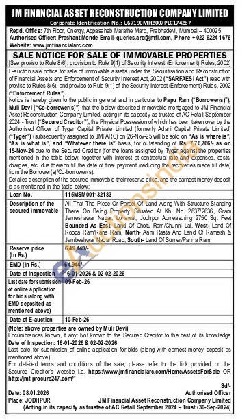 All That The Piece Or Parcel Of Land Along With Structure Standing There On Being Property Situated At Kh. No. 2837/2636, Gram Jameshawar Nagar, Lohawat, Jodhpur Admeasuring 2750 Sq. Feet Bounded As East Land Of Chotu Ram/Chunni Lal, West- Land Of Roopa Ram Rana Ram, North Aam Rasta And Land Of Ramesh & Jambeshwar Nagar Road, South-Land Of Sumer/Panna Ram