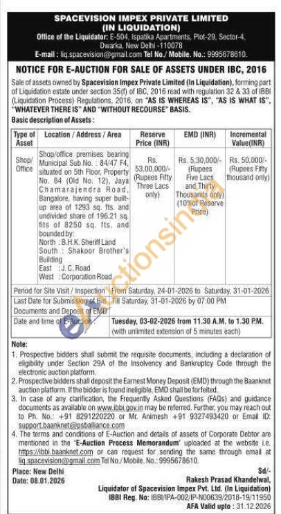Shop/office premises bearing Municipal Sub No. 84/47 F4. situated on 5th Floor, Property No. 84 (Old No. 12), Jaya Chamarajendra Road, Bangalore, having super built-up area of 1293 sq. fts, and undivided share of 196.21 sq. fits of 8250 sq. fts.