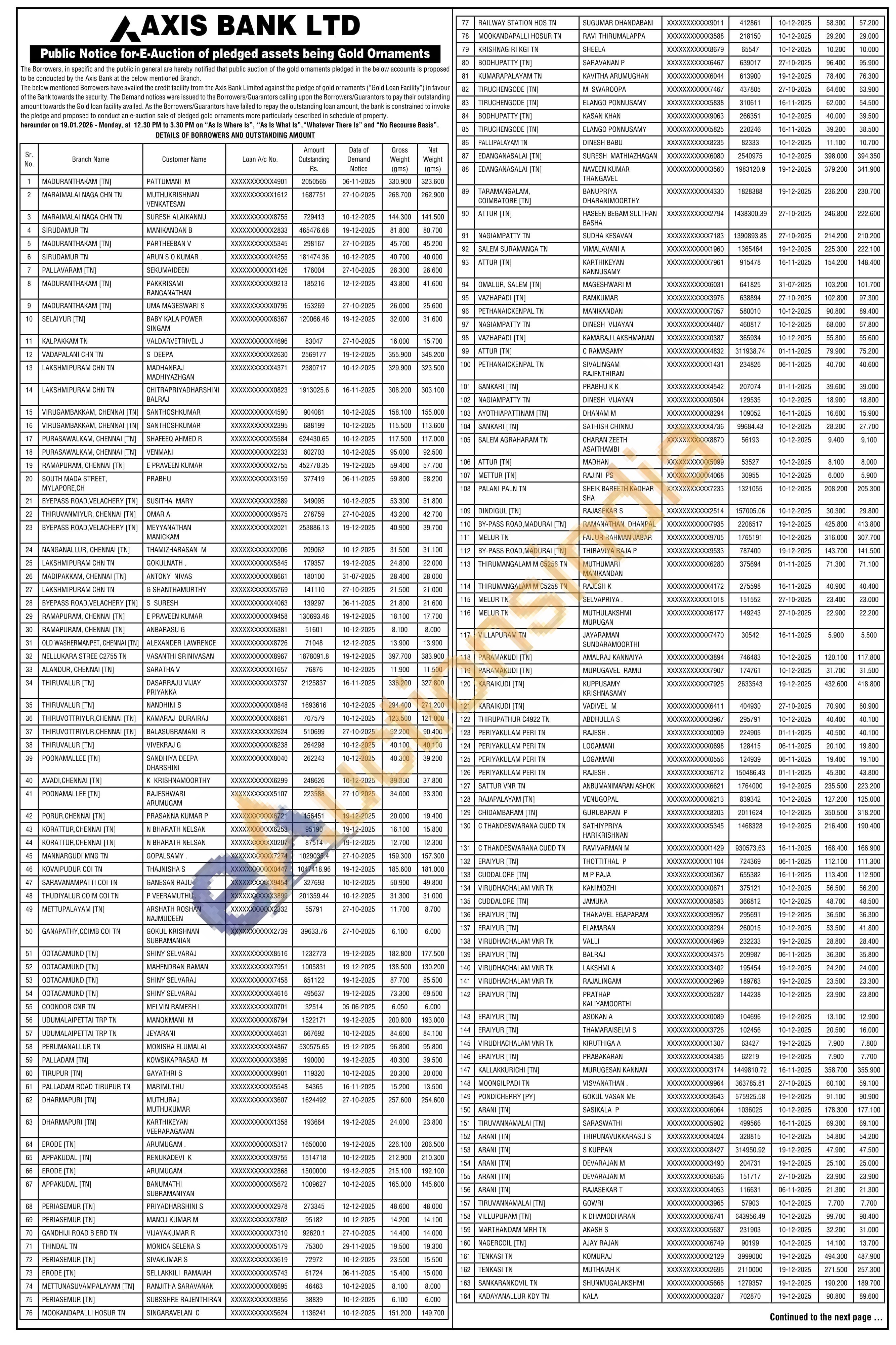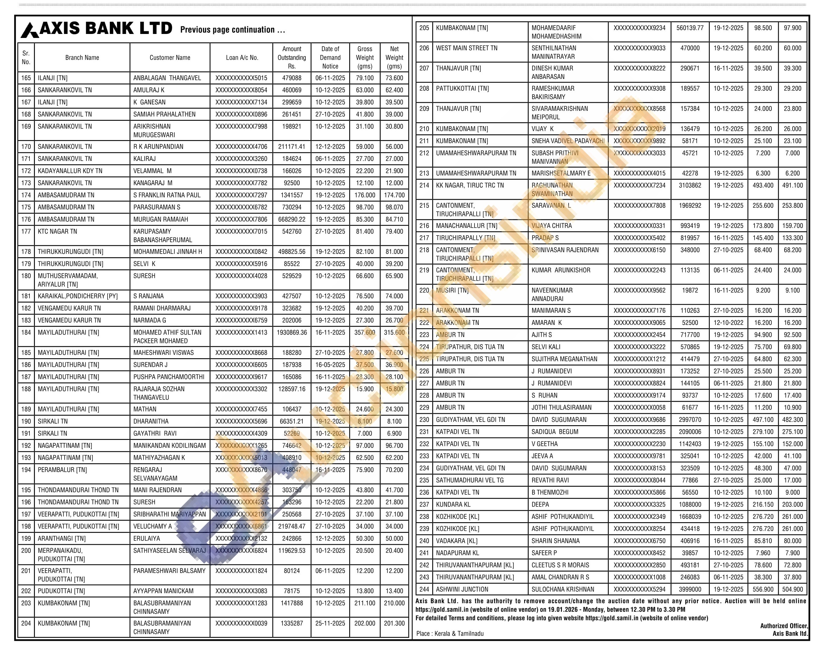 Axis Bank Gold Auctions Auction in Tiruvallur