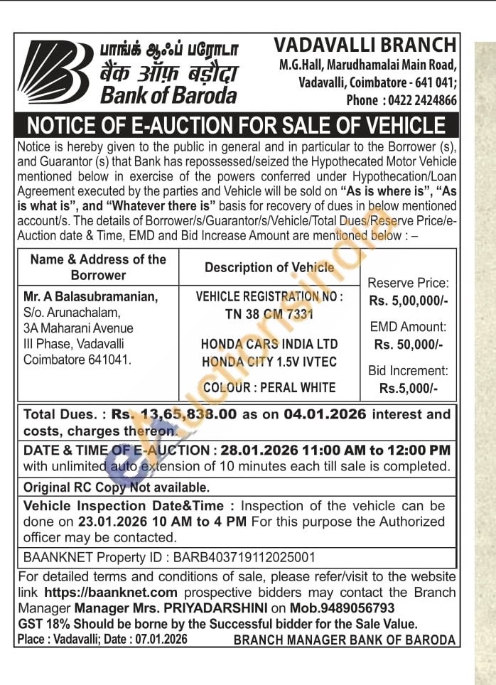 VEHICLE REGISTRATION NO: TN 38 CM 7331 HONDA CARS INDIA LTD HONDA CITY 1.5V IVTEC COLOUR: PERAL WHITE