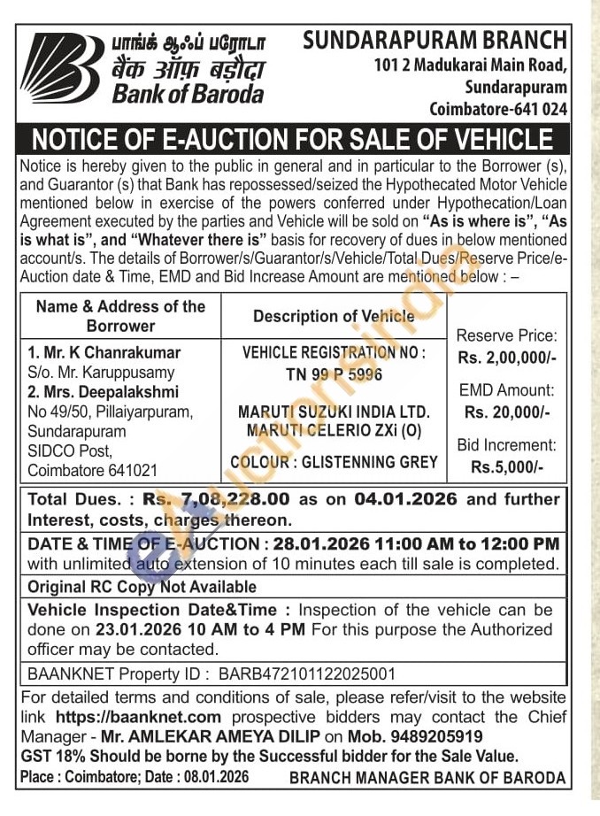 VEHICLE REGISTRATION NO: TN99P5996 MARUTI SUZUKI INDIA LTD. MARUTI CELERIO ZXI (O) COLOUR: GLISTENNING GREY B