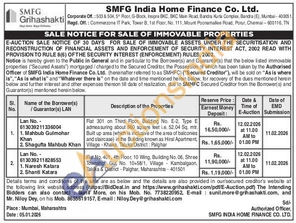 Flat 301 on Third Floor, Building No. E-2, Type E admeasuring about 560 square feet i.e. 52.04 Sq. mtr. Built up area (which is inclusive of the area of balconies and staircase) in the Building known as Hiral Apartment, Village-Khaira, Taluka/District: Palghar