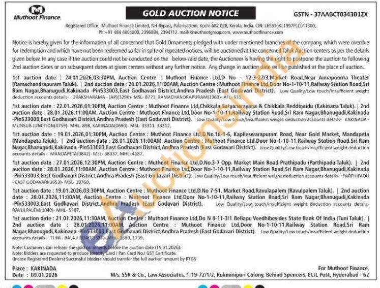 Muthoot Finance Ltd Gold Auctions Auction in Kakinada