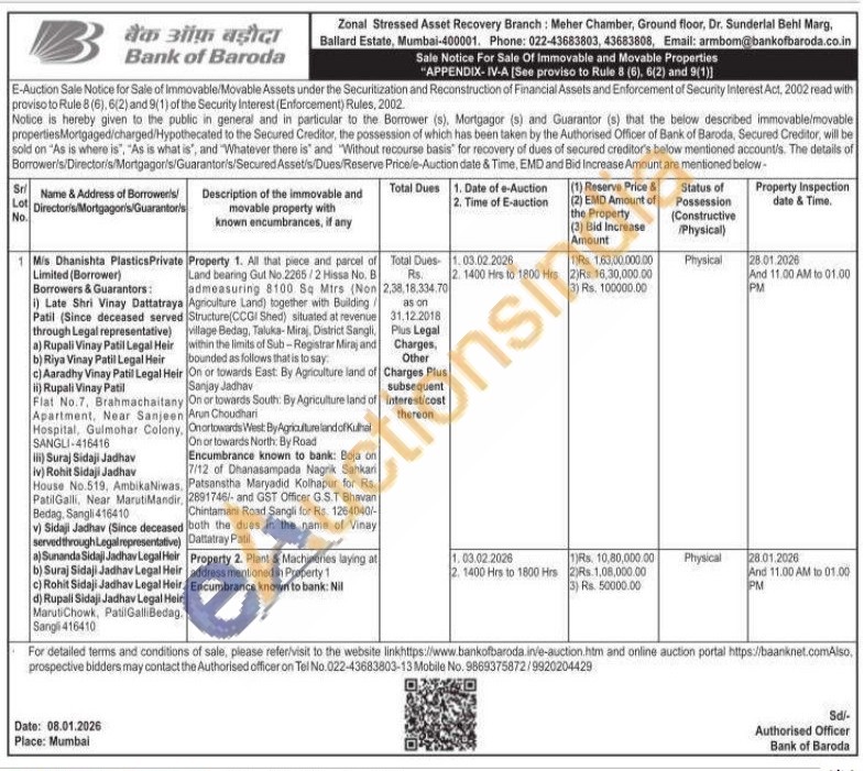 Property 2. Plant & Machineries laying at address mentioned in Property 1 Encumbrance known to bank: Nil