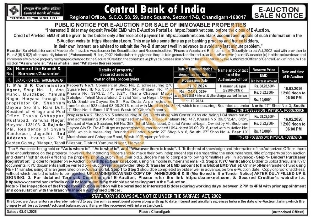 Commercial Shop No. 2, admeasuring 270. 11, Anaj Square feet HB No. 358, Khewat No. 345, Khatauni No. 417, , Yamuna Khasra No. 39//3/2, 4/1, 8/2/1, Thana Chappar Mauja through its Sabalpur, Tehsil Mustafabad, District Yamuna Nagar, Owned Shubham by Mr. Shubham Dayora S/o Sh. Ravi Dutta, As per registered Ravi Dutt, transfer deed 923 dated 03.08.2016, read with Mutation and Post 27" Shop No. 1, East: 10"Road, West: 10"Other's Property.