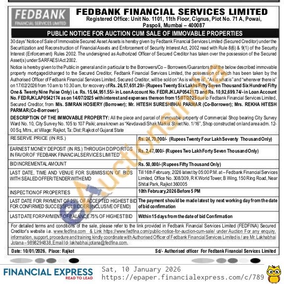All the piece and parcel of immovable property of Commercial Shop bearing City Survey Ward No. 10, City Survey No. 105 to 107 Paiki, area known as "Kevdavadi Shak Market Street No. 1/16", Shop constructed on land area adm. 12-00 Sq. Mtrs., at Village: Rajkot, Ta: Dist: Rajkot of Gujarat State