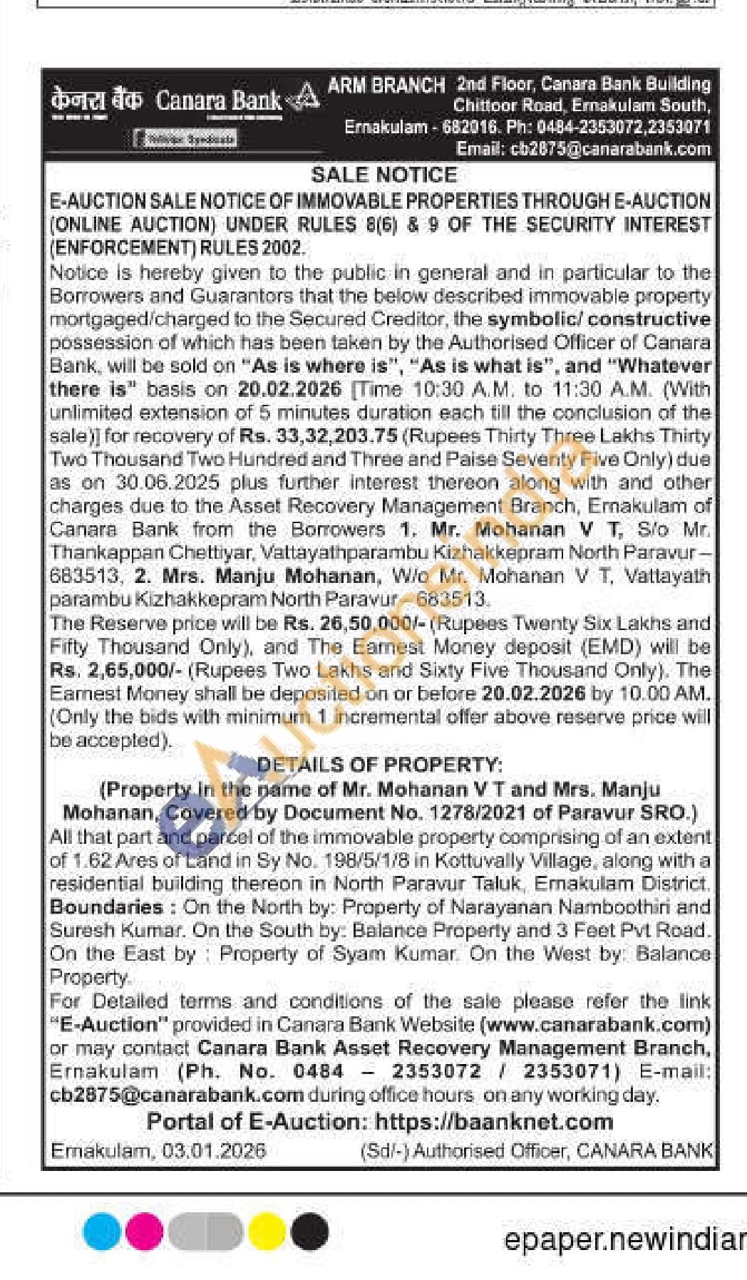 (Property in the name of Mr. Mohanan V T and Mrs. Manju Mohanan, Covered by Document No. 1278/2021 of Paravur SRO.)