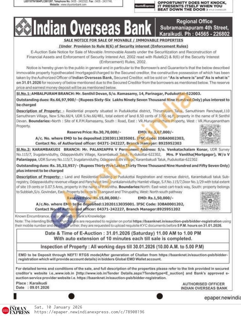 Land and Residential building in Pudukottai Registration and revenue district, Karambaikudi taluk Sub registry, Odappaviduthy revenue village and Parichayat limit, Irunkaliarviduthy Hamlet village, S.FNo.115/7, Door No. 1/29 with total extent of site 19 cents or 0.07.5 Anes, property in the name of P Vanitha. Boundaries North East-west cart-track way, South: property belongs to Subbiah,S/o. Govindan, East: Property belongs to Thangavel and Tharupathy, West: North south pathway