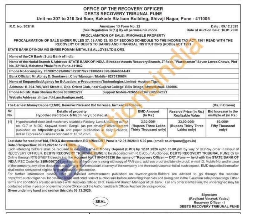 Hypothecated stock and machinery located atFactory, Land& building at Plot no. G-7 in MIDC, Kupwad block, Sangli. (